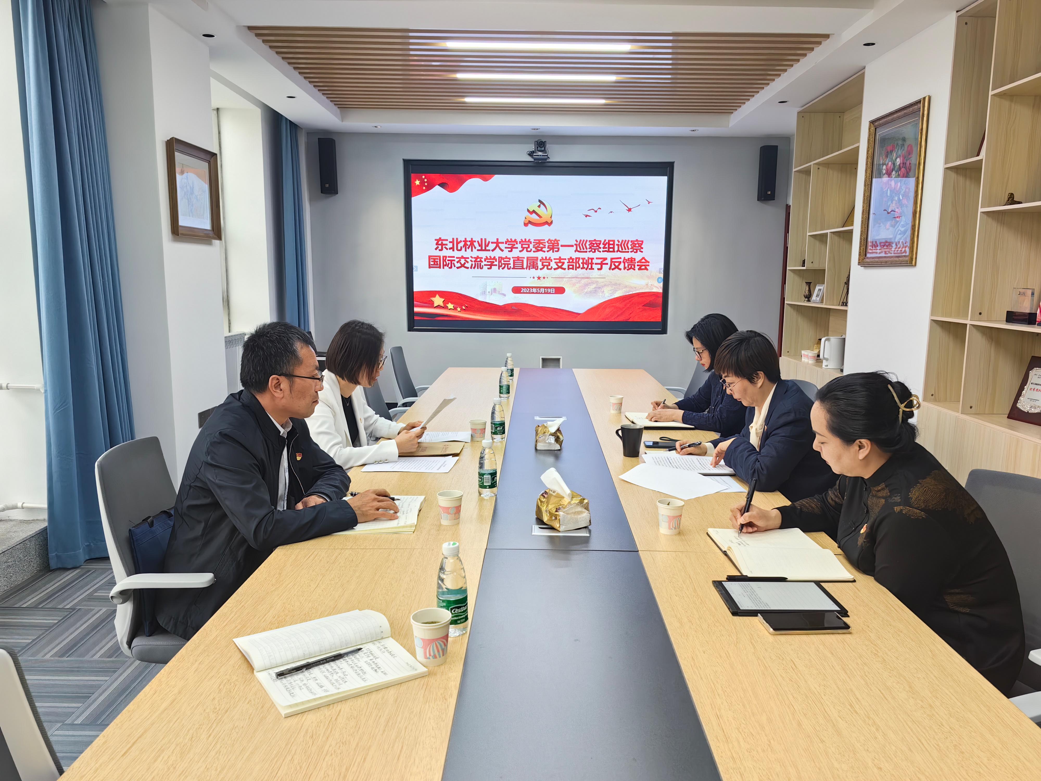 根据学校党委对巡察工作的统一部署,5月19日下午,党委第一巡察组向国际交流学院直属党支部反馈巡察情况。巡察组首先向国际交流学院领导班子反馈了巡察情况。之后,巡察组向全体教职工进行反馈,反馈会由国际交流学院院长兼直属党支部书记骆颖主持。