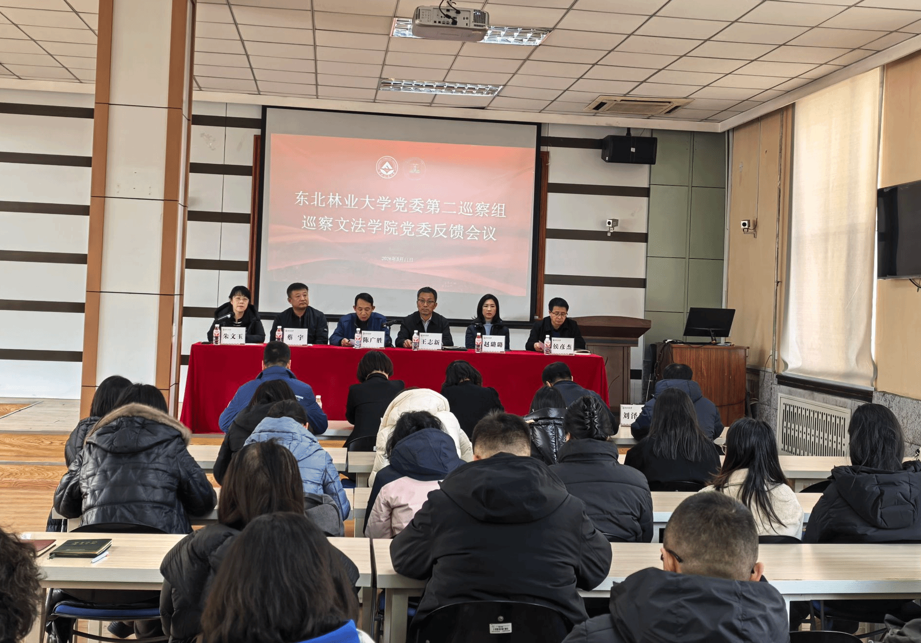 党委第二巡察组组长、副组长、联络员,党委巡察办同志出席反馈会。文法学院领导班子成员及全体教职工参加了反馈会。
