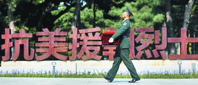 9月27日,第七批在韩中国人民志愿军烈士遗骸抵达沈阳抗美援朝烈士陵园。新华社发