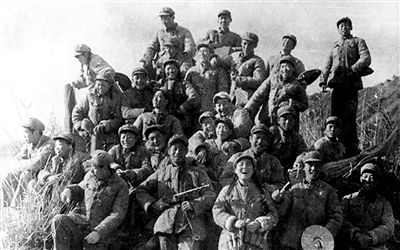 1953年4月,中国人民志愿军文工队小分队演出后合影。