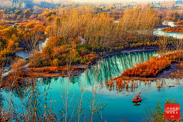 “淇水悠悠,桧楫松舟。”秋意渐浓,位于河南省鹤壁市淇滨区的淇河国家湿地公园碧水蜿蜒、芳草萋萋、飞鸟成群、鱼翔浅底,构成了一幅秀美的湿地生态系统景观图,三两游人泛舟河漾,尽享湿地生态之美。(河南省鹤壁市淇滨区纪委监委供 李跃 摄)