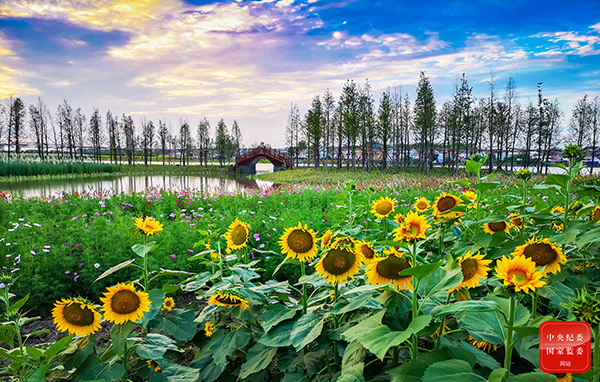 江苏省连云港市灌云县结合本地实际,建立潮河湾湿地公园,修复水生态环境,重建水禽栖息地,已成为游客休闲旅游的好去处。秋季的潮河湾,千亩葵花齐盛开,如朝阳一般灿烂的向日葵花海令人惊艳。每一朵向日葵都开得明艳欲滴、生机勃勃。(江苏省连云港市灌云县纪委监委供 周志国 摄)