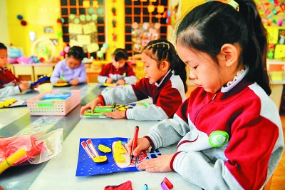 河北石家庄第一实验幼儿园的孩子们在手绘冬至民俗画。新华社发