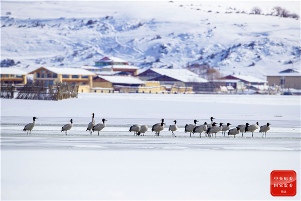 寒冬来临,云贵高原仿佛是隐于世的童话世界,远山、村庄银装素裹。成群结队的黑颈鹤在这里栖息越冬,给寂静的冬日平添了一抹生命的灵动。(云南省龙陵县纪委监委供 邵元武 摄)