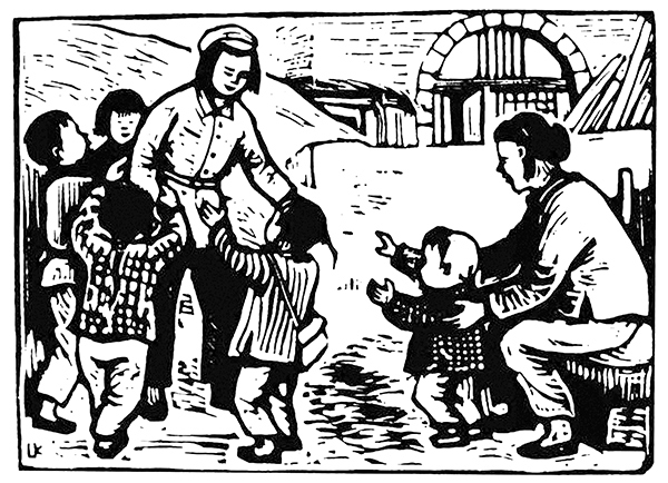 版画《小学教师》,力群1945年创作于延安