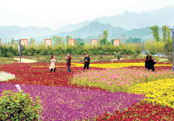 近年来,重庆市开州区竹溪镇大力推进乡村振兴建设,从产业提升、人居环境、基础设施等方面着手,深入挖掘农村的生态涵养、休闲观光、文化体验、健康养老等多重价值,推动农文旅融合发展。图为游客在竹溪镇乡村振兴示范园区游览。 新华社记者 刘潺 摄