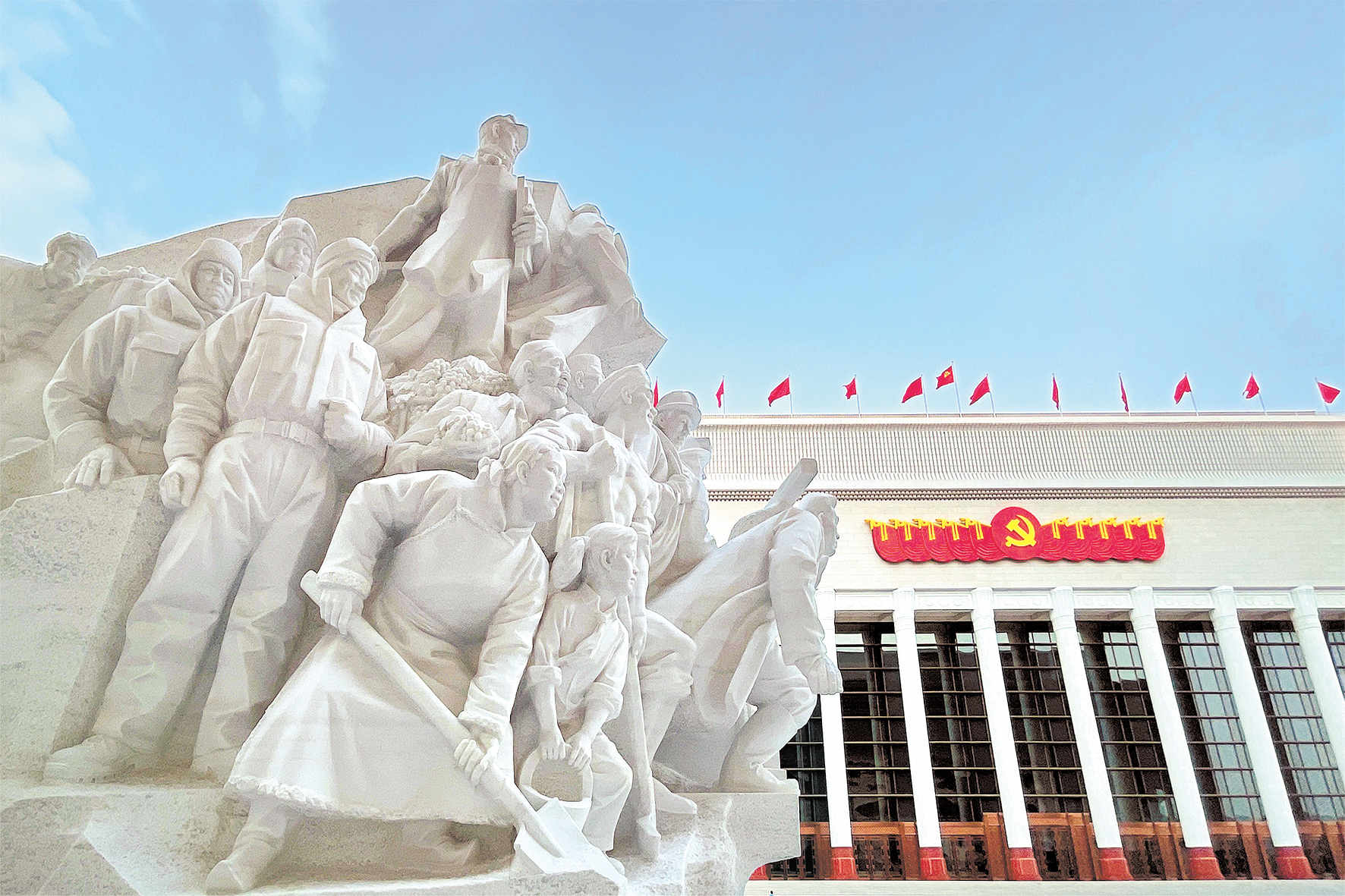 图为矗立在中国共产党历史展览馆西侧广场上的大型群像雕塑《攻坚》。 (图片来源:人民视觉)