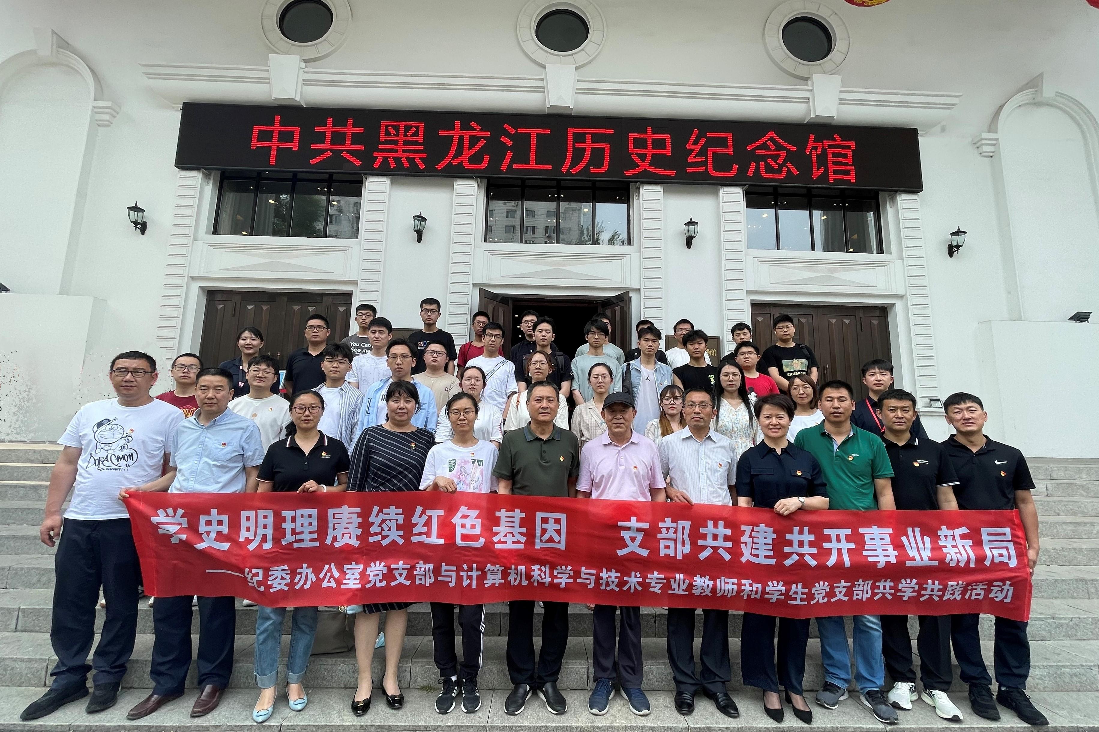 按照学校党史学习教育“1+1+1”互助实践活动的安排,纪委办公室党支部与信息与计算机工程学院计算机科学与技术专业教师和该专业2019级5班学生结成互助对子,共同开展党史学习教育和实践活动。6月16日下午,3个单位近50名师生首先到东北烈士纪念馆和中共黑龙江历史纪念馆开展了实地参观培训。